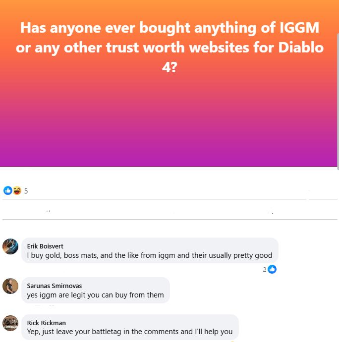 Judging from the current information, IGGM is a third-party trading store that has been operating for many years, providing product transactions for various types of games, including Diablo 4.